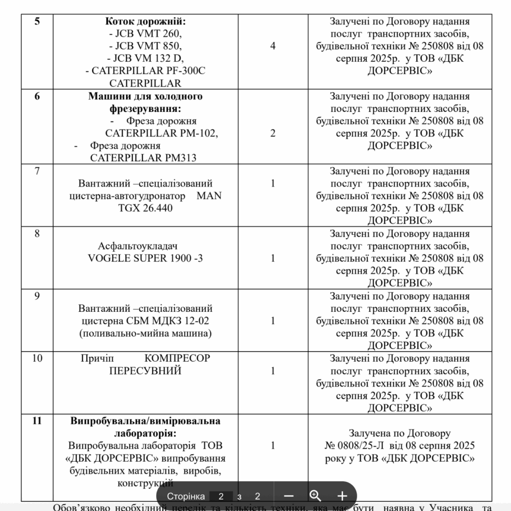Це четверо дорожніх робітників і одна виконавиця робіт. Всю техніку фірма орендує у ТОВ «ДБК ДОРСЕРВІС».