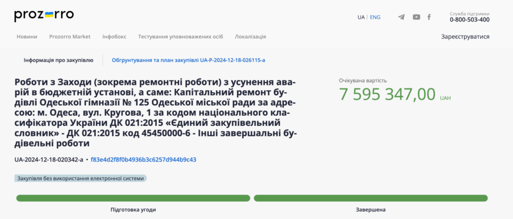 Лише до першої закупівлі на понад 7,5 млн грн чиновники опублікували обґрунтування. Проведення закупівлі без використання електронної системи пояснили нагальною потребою під час воєнного стану.