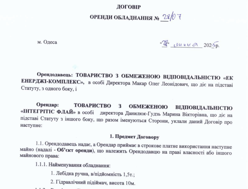 ТОВ «Інтегрітіс Флай», відповідно до документів, які надавалися цьогоріч на відкриті торги, орендує частину техніки у фірми «ЕК Енерджі-комплекс».