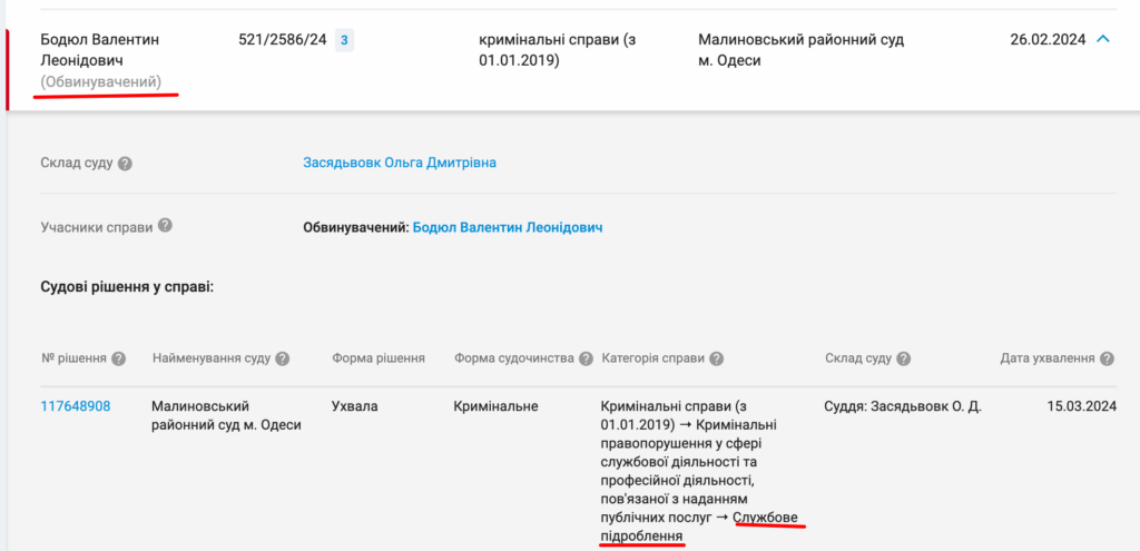 Засновник цієї компанії, Валентин Бодюл, наразі є обвинувачуваним у кримінальній справі про службове підроблення. Справа розглядається в Малиновському районному суді Одеси