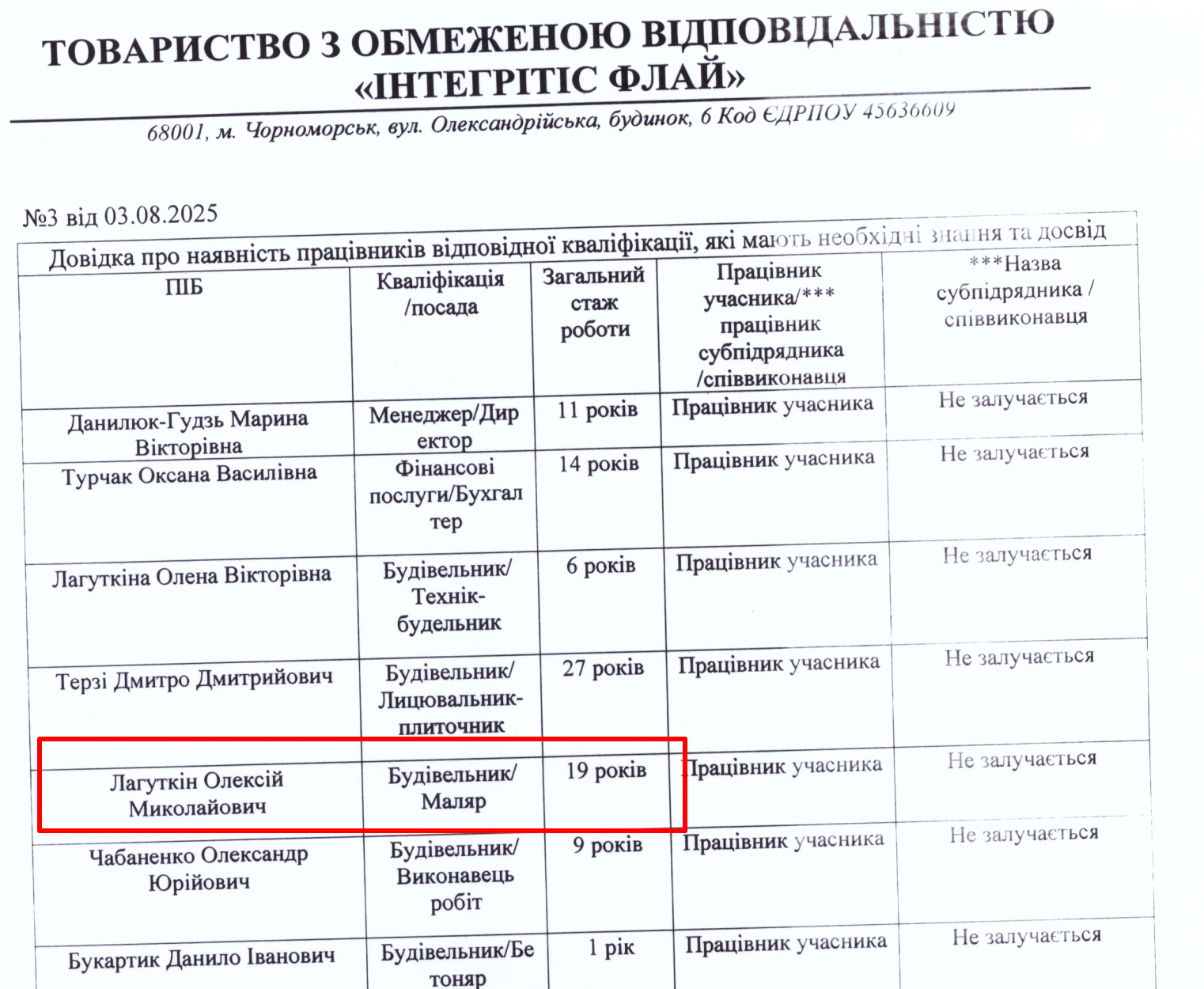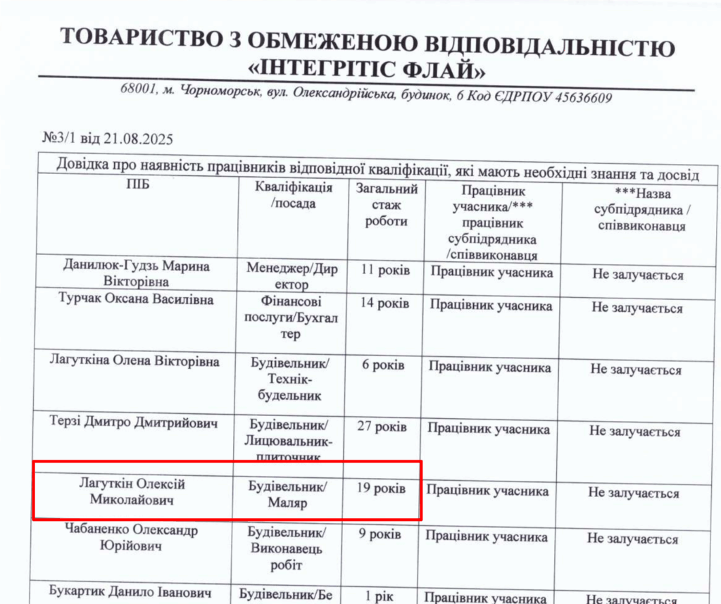 Цікаво, що згідно з документами, які подавалися на одні з торгів у 2025 році, Олексій Лагуткін працює в фірмі звичайним маляром.