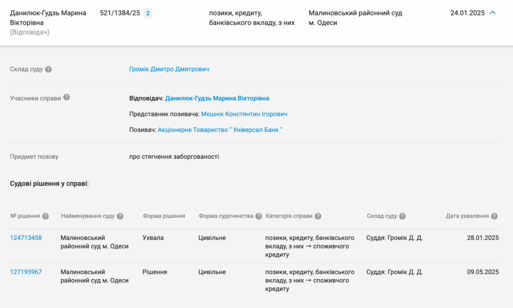 У 2020 році справи в неї, ймовірно, пішли не дуже добре, адже вона взяла кредит в Монобанку, і борг цей кредитори ще цього року намагалися повернути через суд. Суд постановив борг стягнути.