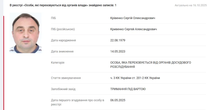 За даними слідства, 46-річний підозрюваний, — засновник та директор благодійного фонду, який займався доставкою гуманітарних вантажів з-за кордону, організував схему незаконного виїзду за межі України чоловіків призовного віку. Йдеться про директора і засновника благодійного фонду «Аджалик» Сергія Кривенка. Він у розшуку з травня 2025 року, адже має ще одну підозру.