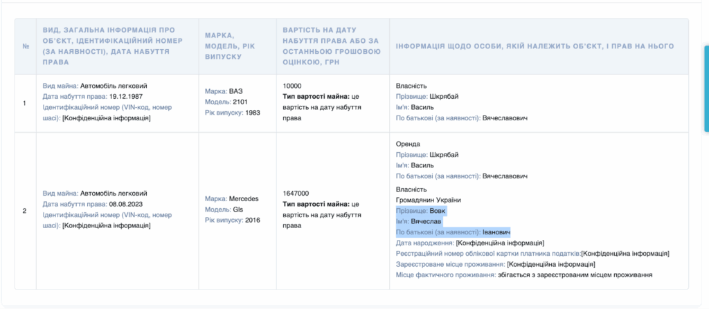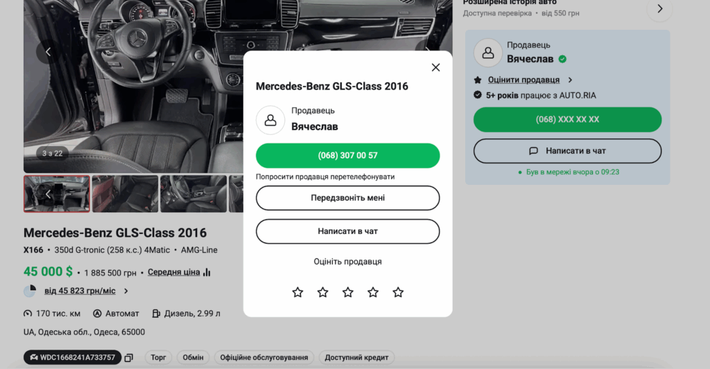 Але віднедавна авто виставили на продаж за $ 45 000. Номер телефона та імʼя продавця збігається з контактами Вячеслава Вовка.