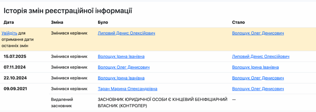 ТОВ «Метпроект» зареєстроване ще у 2013 році на вулиці Чорноморського Козацтва, 115, в Одесі. Станом на 27 жовтня 2025 року директором компанії є Олег В., а єдиною засновницею та кінцевою бенефіціаркою Ірина В.. Історія реєстраційних змін показує, що керівництво компанії змінювалося кілька разів. Зокрема, на момент укладання договору з «АМПУ» у травні 2023 року директором був Олег В., а засновницею Ірина В. У 2024-2025 роках відбувалася часта зміна керівників: Ірина В., Олег В. та Денис Л. по черзі обіймали посаду директора. Остання зміна відбулася 24 жовтня 2025 року, коли керівником знову став Олег В.