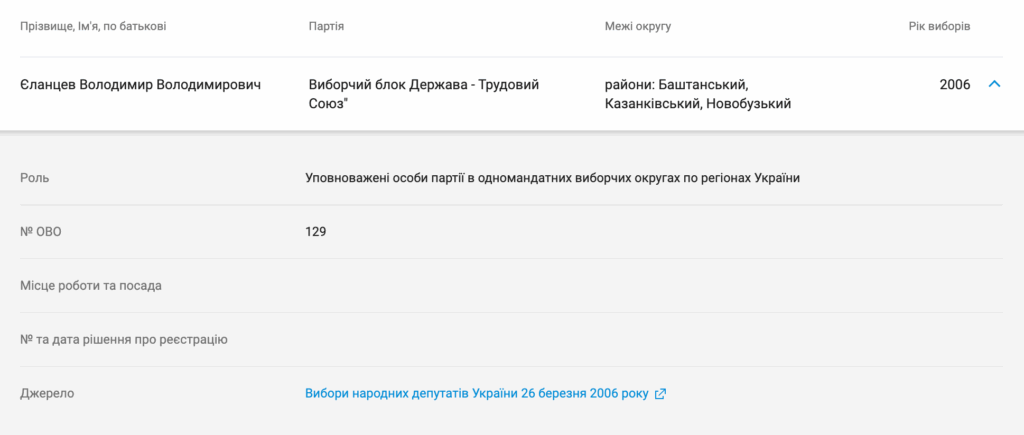 Власник фірми Володимир Є. раніше хотів побудувати політичну кар’єру. У 2006 році він був уповноваженою особою виборчого блоку «Держава Трудовий Союз» у межах одномандатного округу, що охоплював Баштанський, Казанківський і Новобузький райони.