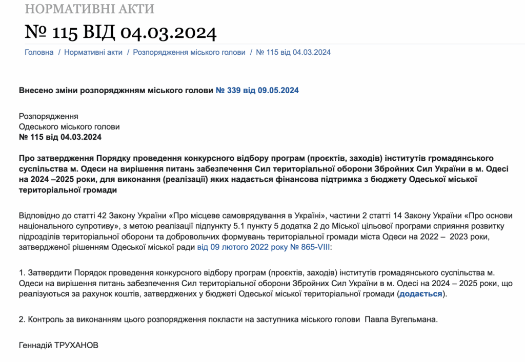 Скриншот з сайту Одеської міської ради