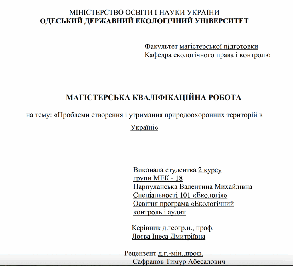 Робота написана студенткою спеціальності «Екологія» в Одеському державному екологічному університеті.