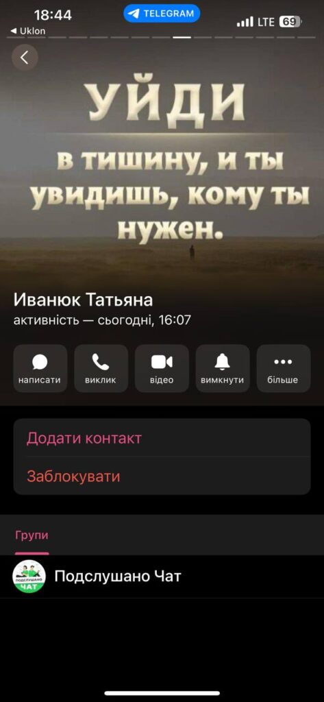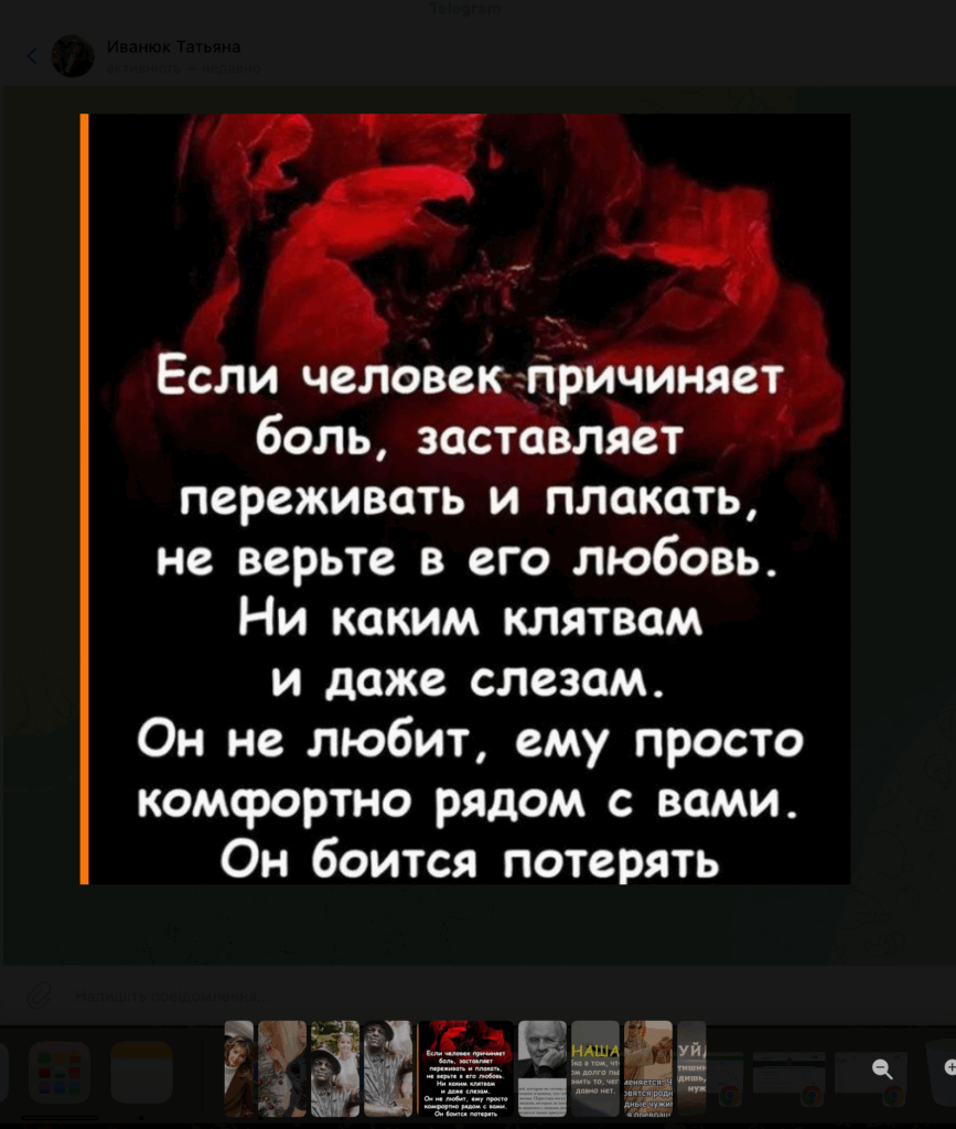 Проте, її номер телефону «підтягує» аккаунт в соціальній мережі Телеграм. Там є фото і підбірка картинок з написами російською «про страждання».