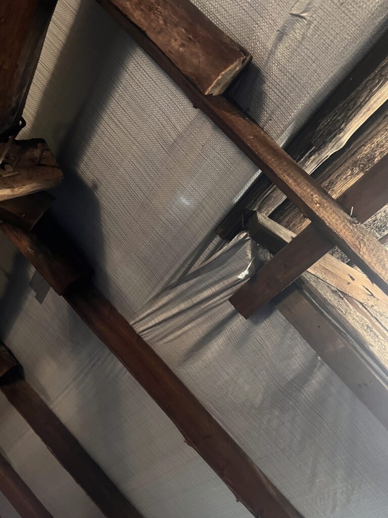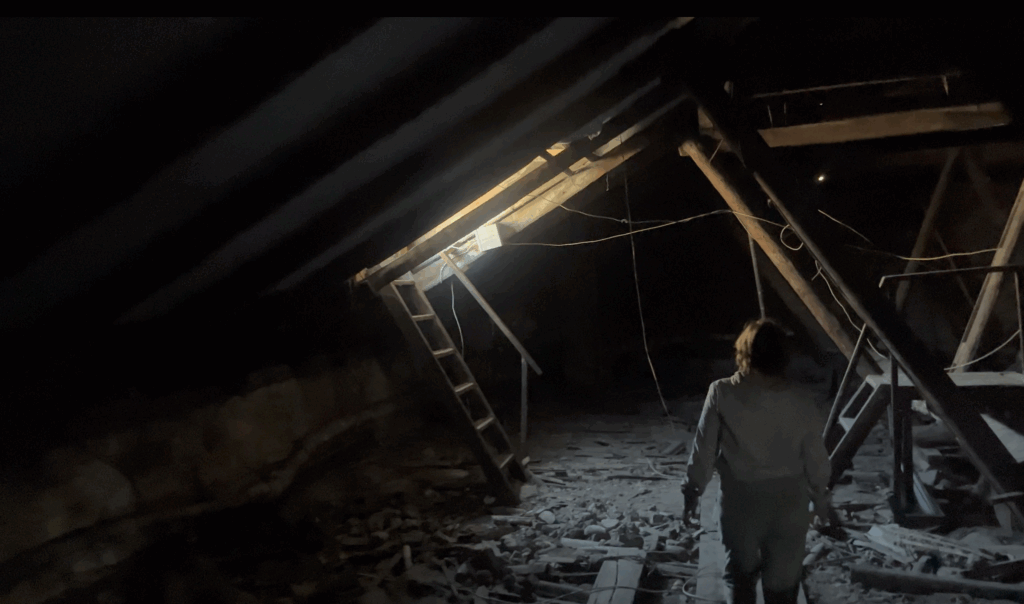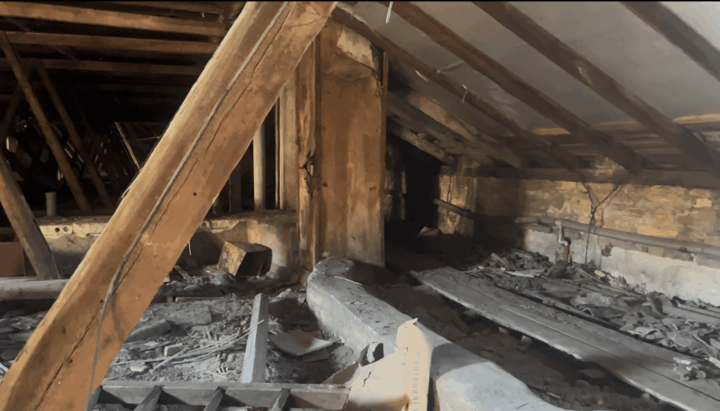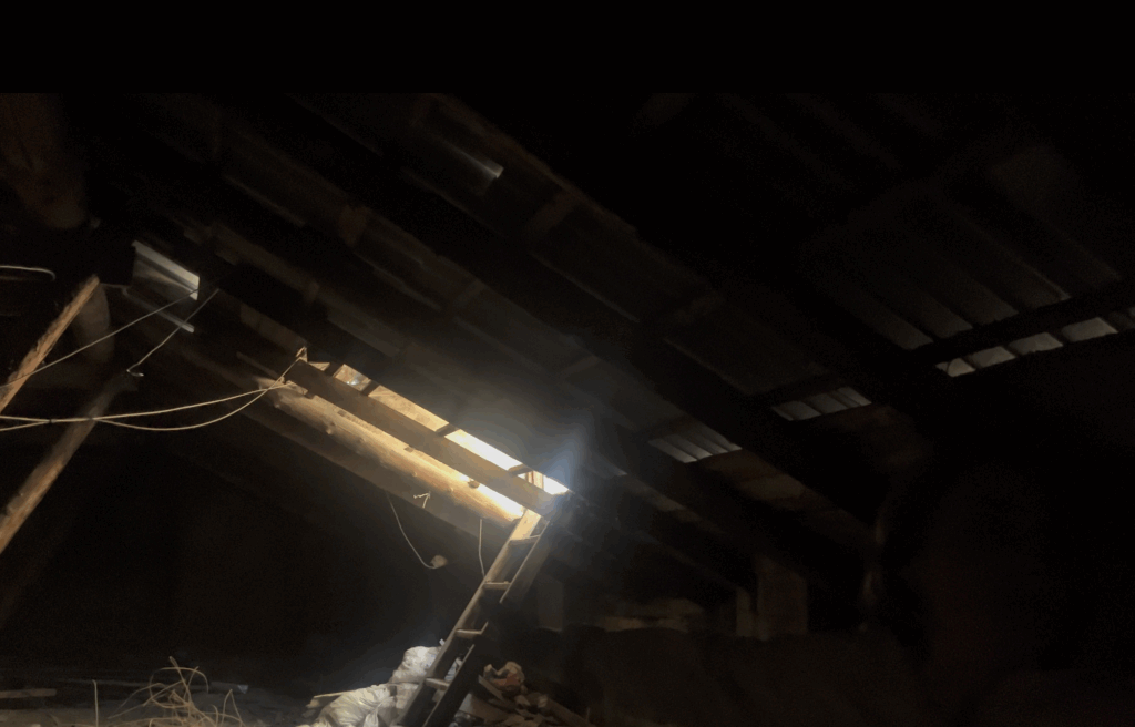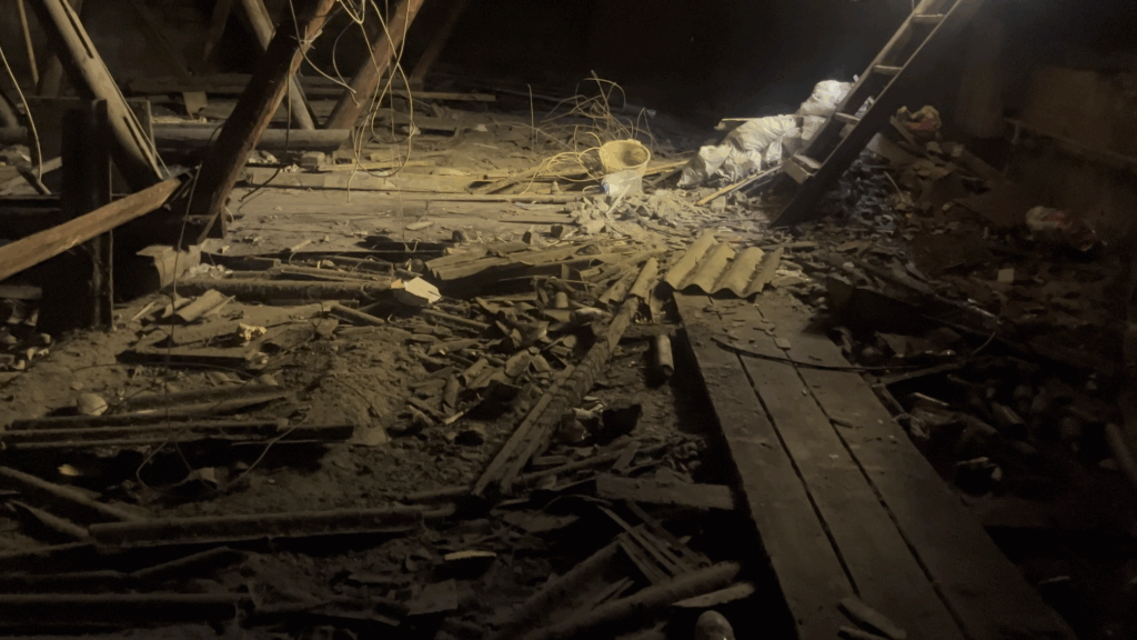 Та одна з мешканок будинку, пані Наталія, провела журналістів на горище, показала де проводили роботи і що ремонтували, а також надала відео, як відремонтований дах підтікав під час зливи наприкінці вересня.
