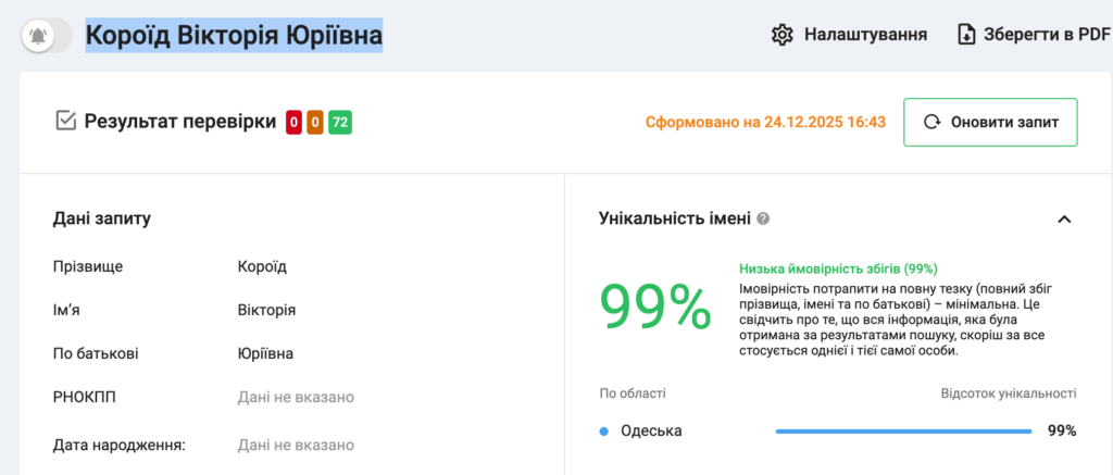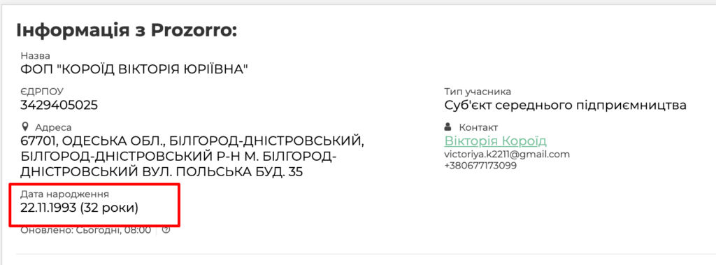 За інформацією аналітичної платформи YouContol, у Вікторії Юріївни Короїд немає повних тезок. А за даними clarity-project, ФОП Вікторія Короїд народилася 22 листопада 1993 року.