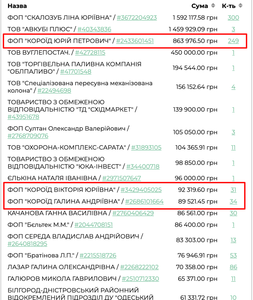 Скидається на те, що пані Вікторія — дочка Юрія Короїда. До речі, його теж дуже люблять посадовці Кулевчанського закладу дошкільної освіти. З ним в цьому закладі вже уклали 249 договорів. Хоча це й не найбільший замовник Юрія Короїда.