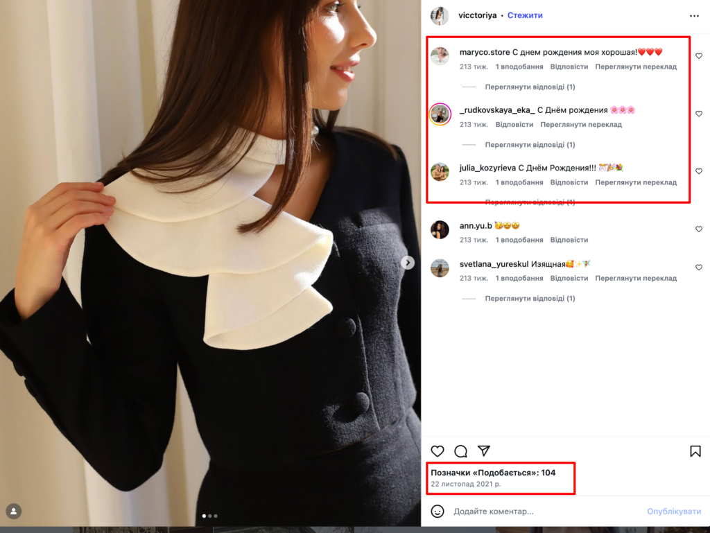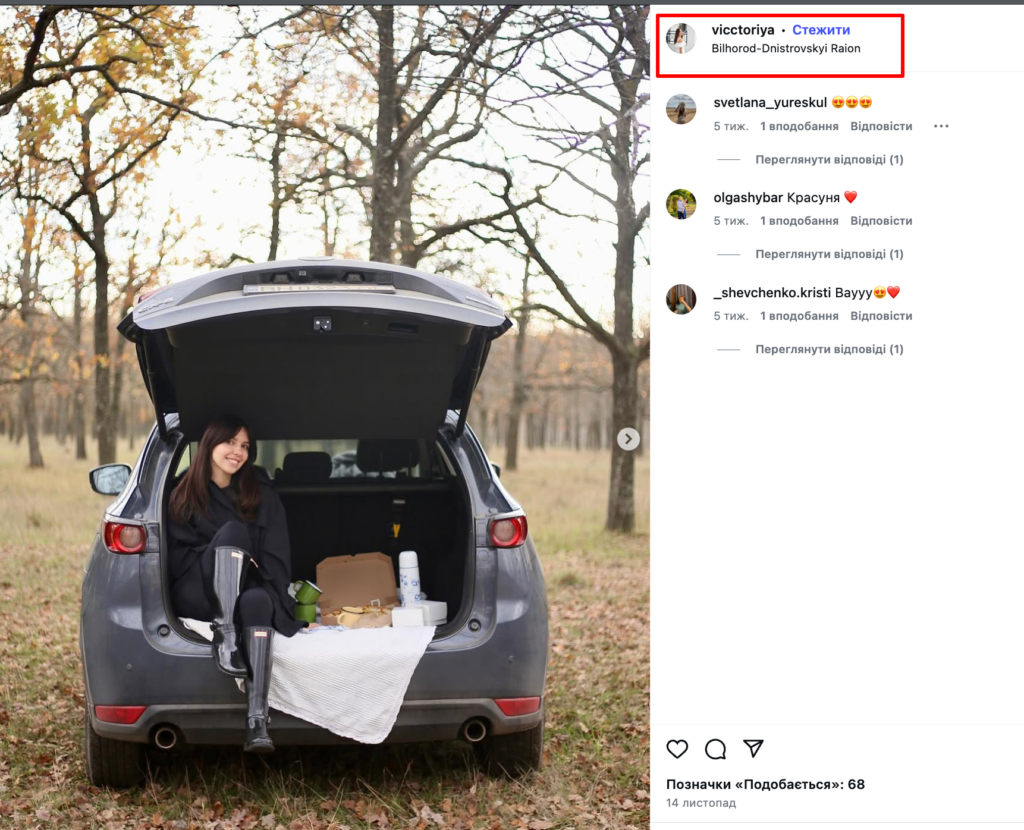В соціальній мережі Інстаграм є профіль Victoria Koroid, яка регулярно відмічає на фото Білгород-Дністровський район і яку вітали з днем народження саме 22 листопада.
