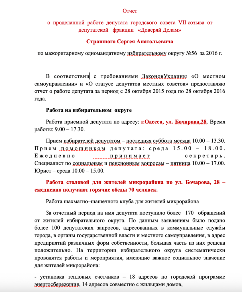 Скриншот звіту депутата Сергія Старшного