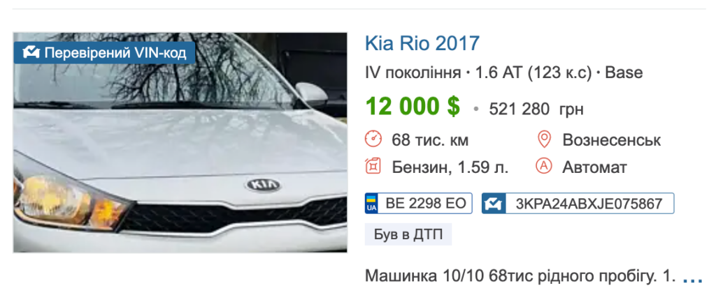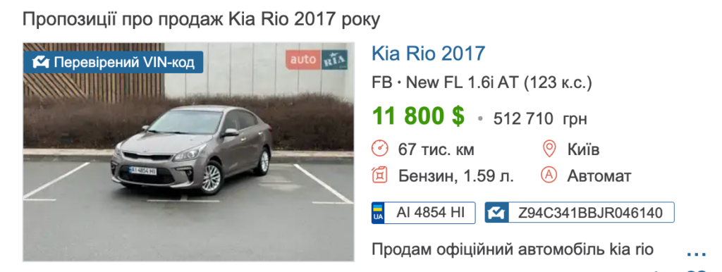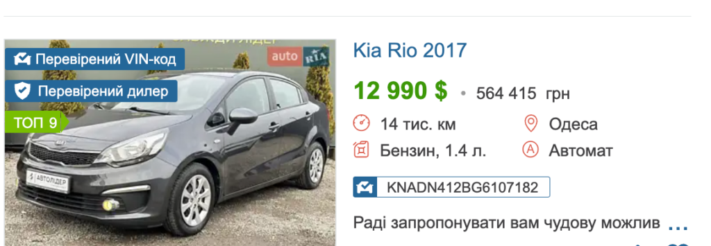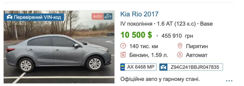 За даними порталу Авто.Ріа, Kia Rio 2017 року дійсно коштують близько півмільйона гривень.