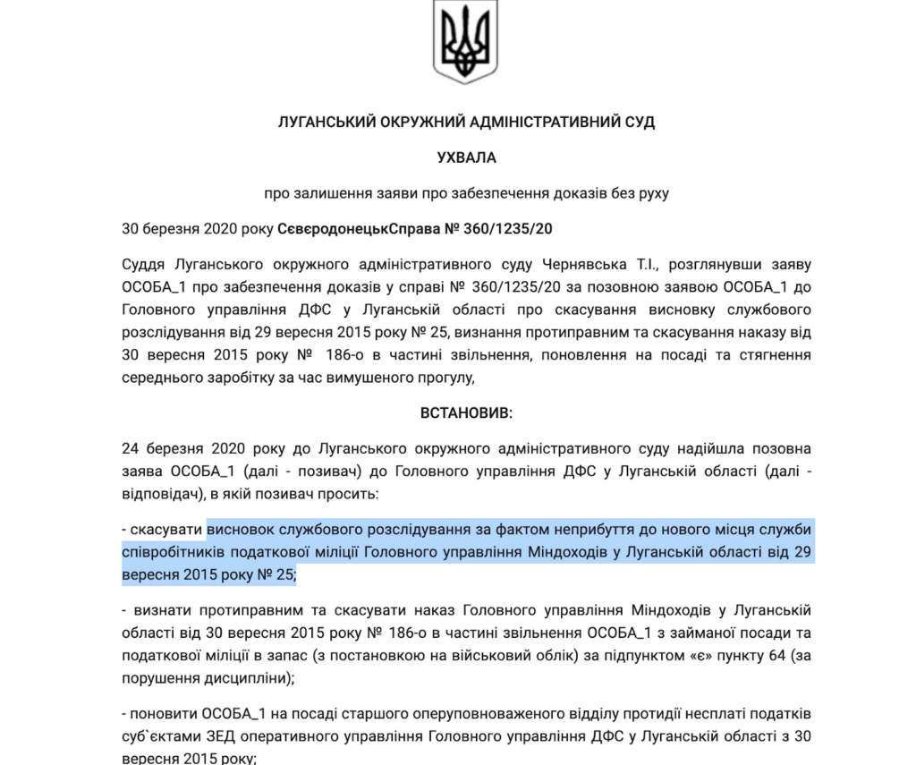 Звільнили його ще в 2015 році на підставі висновку службового розслідування за фактом неприбуття до нового місця служби. І до 2021 року, тобто і вже ставши депутатом на Одещині, експодатківець судився, дійшовши до касаційної інстанції, і вимагав поновити його на службі та заплатити зарплату за всі ці роки. Останньою ухвалою, що є в відкритому доступі, касаційну скаргу йому повернули.