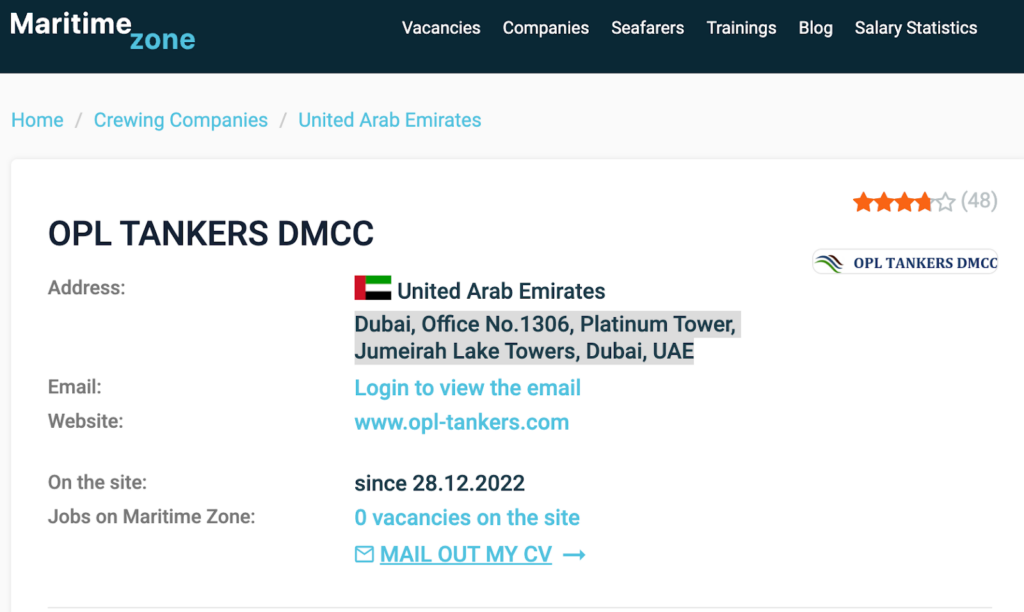 Можна знайти спеціаліста, який шукає роботу і як теперішню посаду вказує OPL Tankers DMCC.