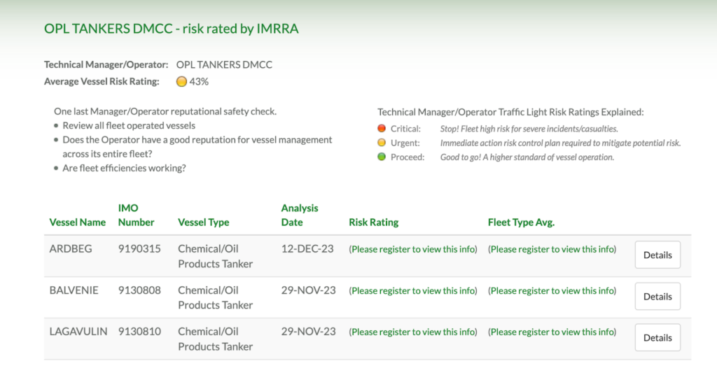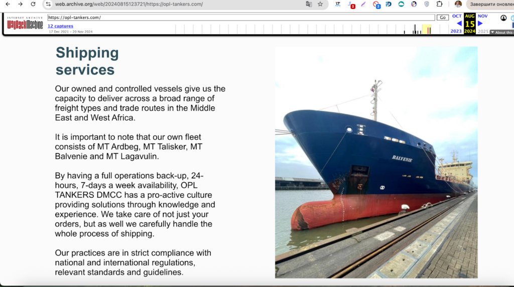Повернемося до фірми, в якій працює депутат Одеської райради. Вона займається морськими перевезеннями і з нею повʼязані принаймні три танкери. За даними сайту INTERNATIONAL MARITIME RISK RATING AGENCY, фірма повʼязана з кораблями ARDBEG (IMO 9190315), BALVENIE (IMO 9130808) та LAGAVULIN (IMO 9130810). Призначені ці танкери для перевезення мастил та хімікатів. OPL Tankers DMCC значиться, як менеджер-оператор суден.