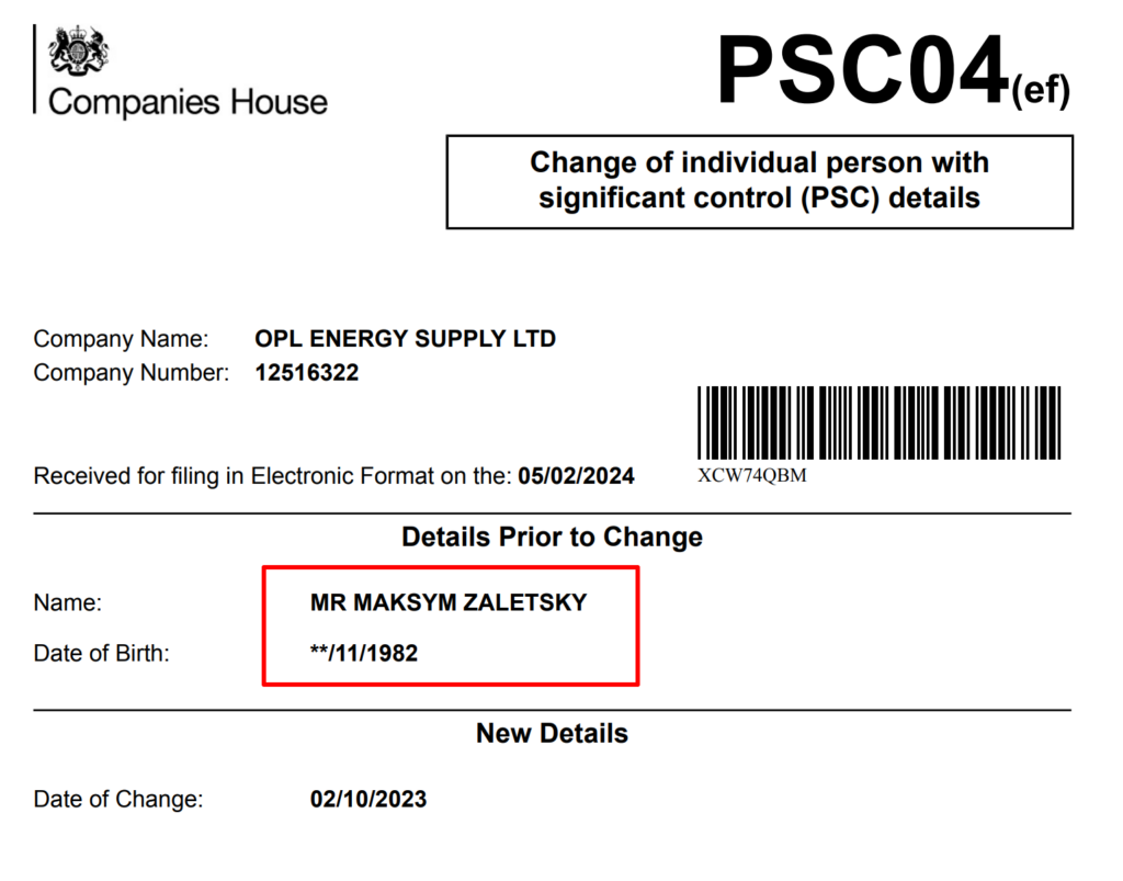 Британський реєстр також повʼязує фірму OPL ENERGY SUPPLY LTD Максимом Зелецьким та Белле Елною Паулетт.