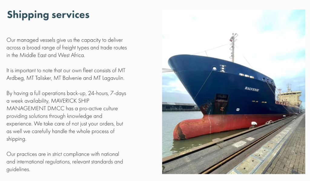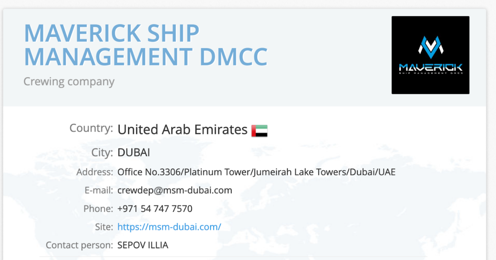 Скриншот з сайту MAVERICK SHIP MANAGEMENT FZCO