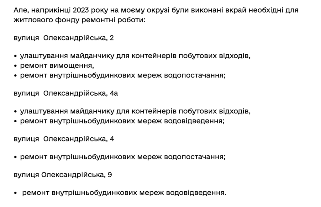 Скриншот з депутатського звіту