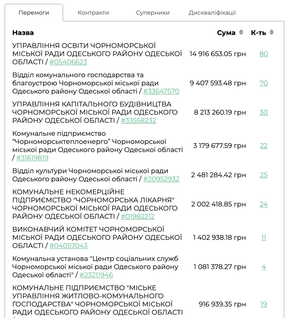 Цікаво, що востаннє хоч якісь документи на торги фірма «Тріада» подавала ще у 2022 році. Це були цінова пропозиція у закупівлі щодо скління котельні і пропозиція щодо поточного ремонту опалення в будівлі виконкому. Загалом неконкурентних закупівель за участю «Тріади» портал clarity-project нарахував 247. З фірмою «Строітєль» теж більшість договорів укладена за неконкурентною процедурою.