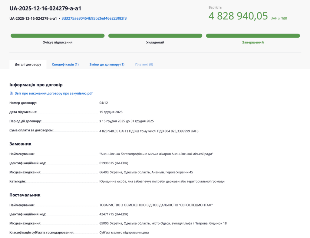 Про це повідомляє «Антикорупційний вимір» із посиланням на корегування закупівлі, розміщене на Prozorro.