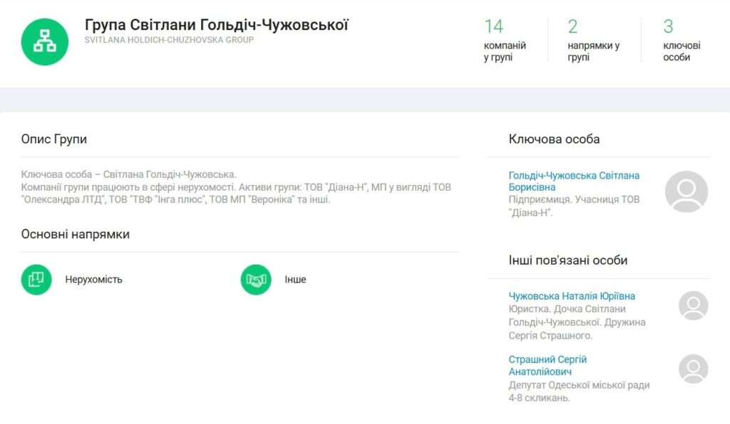 Цілих два об’єкта нерухомості поза конкурсом міська влада погодила продати компаніям з орбіти депутата від партії «Довіряй ділам» Сергія Страшного та його дружини, нотаріуса Наталії Чужовської. Йдеться про приміщення площею 285,4 кв. м. на Миколаївській дорозі, 245, яке поза конкурсом відчужило у 2022 році ПП «Агат плюс», і приміщення на 196,2 квадрата на Отамана Головатого, 18/3, яке продали у 2023 році ТОВ «Центр медіум плюс». Річ у тім, що власницею ПП «Агат плюс» є така собі Лариса Кербут, яка раніше була власницею ТОВ «Центр медіум плюс». Зараз однією з співвласниць цієї компанії значиться Світлана Гольдіч-Чужовська, родичка Наталії Чужовської.