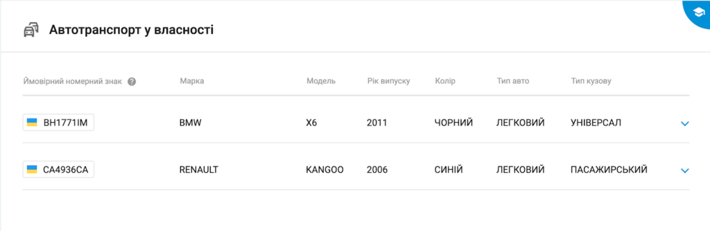 На Діану Слободян за даними YouControl зареєстровано два автомобілі. Йдеться про BMW X6 2011 року випуску чорного кольору та Renault Kangoo 2006 року синього кольору. Обидва транспортні засоби зазначені як легкові: BMW з кузовом універсал, Renault пасажирський.