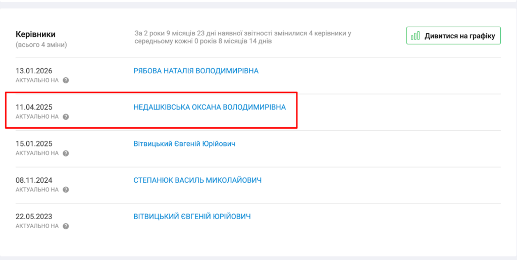 Зараз фірмою керує Наталія Рябова, а власником є Євгеній Вітвицький з міста Торецьк. Проте, 4 листопада 2025 року за даними YouControl, керував фірмою Євгеній Вітвицький, який цього ж дня і став власниклом. Проте, підписала договір вже наступна керівниця фірми. Яка пропрацювала не довго.