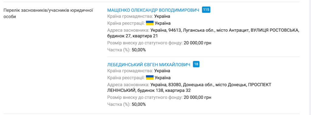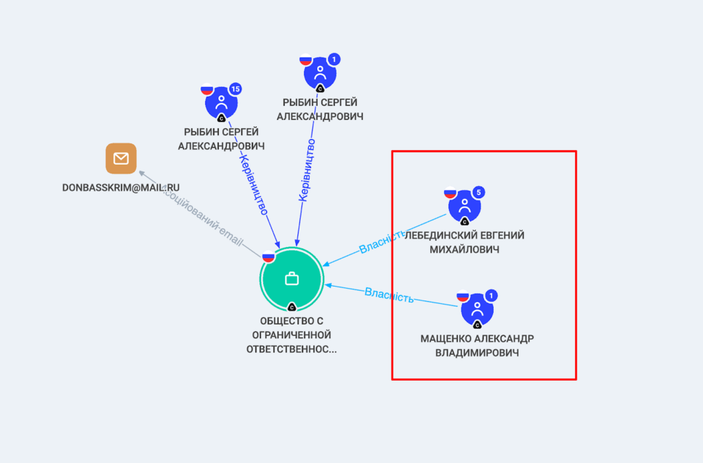 В українському ТОВ у нього є співзасновник, Олександр Мащенко. І «на диво», так само звуть співзасновника російського ООО «Донбасс Крим».