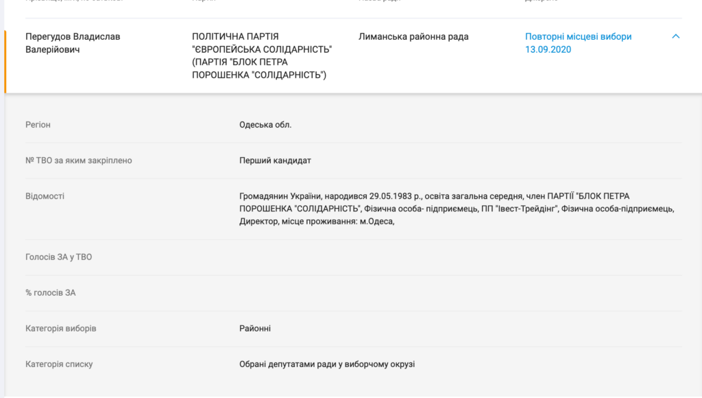Він подавав декларації як депутат Лиманської районної ради Одеської області за 2017-2020 роки.