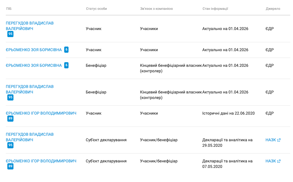 Власник фірми Владислав Перегудов має політичну кар’єру в минулому. На місцевих виборах 2015 року він балотувався від партії «Європейська солідарність», тоді ще «Блок Петра Порошенка Солідарність», до Одеської обласної та Лиманської районної рад. У висновку Перегудова обрали депутатом Лиманської районної ради.