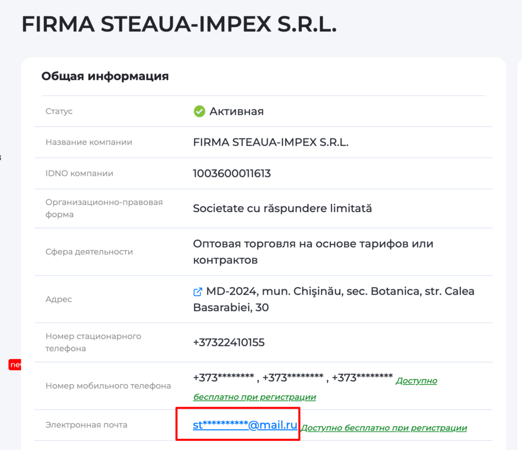 «Steaua Impex» зареєстрована у столиці Молдови Кишиніві у 1999 році. Вона спеціалізується на імпорті та дистрибуції продуктів, зокрема з рф. Навіть пошта у компанії зареєстрована на mail.ru.
