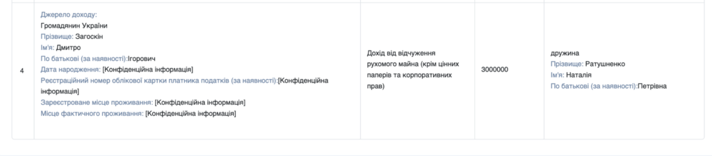Значних доходів у родини не було. У 2023 році депутат, він же чиновник, заробив 428 116 гривень. Інших надходжень родина начебто не мала. У 2024 році до 727 720 гривень зарплати чоловіка додалася невеличка зарплата дружини і соціальні виплати.