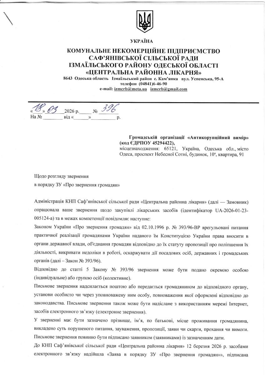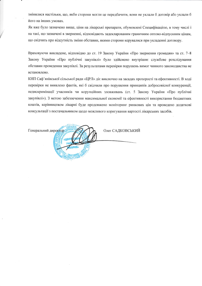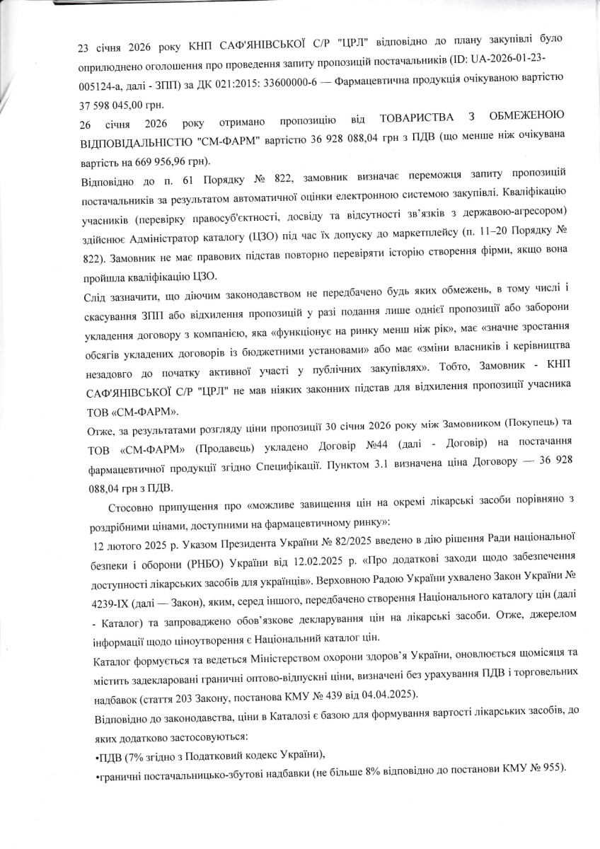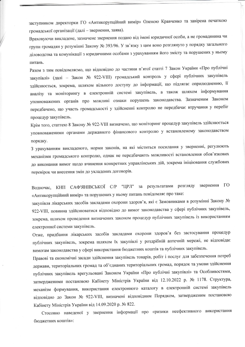 Поки правоохоронці розслідують можливе привласнення коштів, редакція «Антикорупційного виміру» розповідала про те, що КНП Саф’янівської сільської ради «Центральна районна лікарня» придбало ліків на 36 928 088,04 гривень.