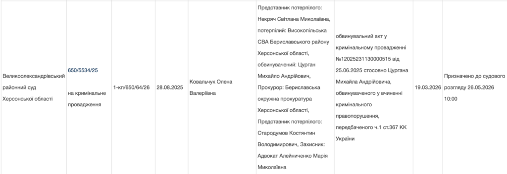З порталу Судова влада відомо, що особа, щодо якої обирали запобіжний захід, це Цурган Михайло Андрійович.